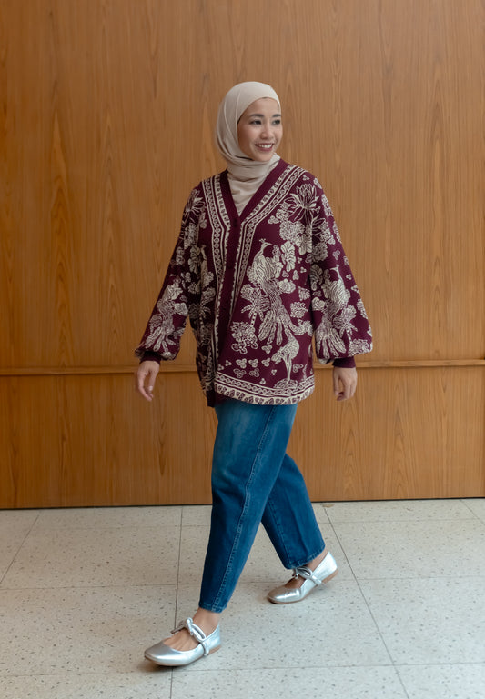 NONAETAL Greta Heritage Knit Cardigan Oversized Burgundy