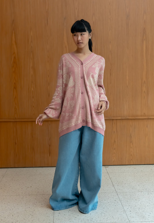 NONAETAL Greta Heritage Knit Cardigan Oversized Pink