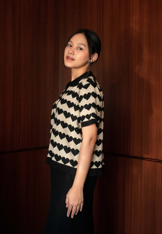 NONAETAL Cupid Heart Polo Knit Top Short Sleeve