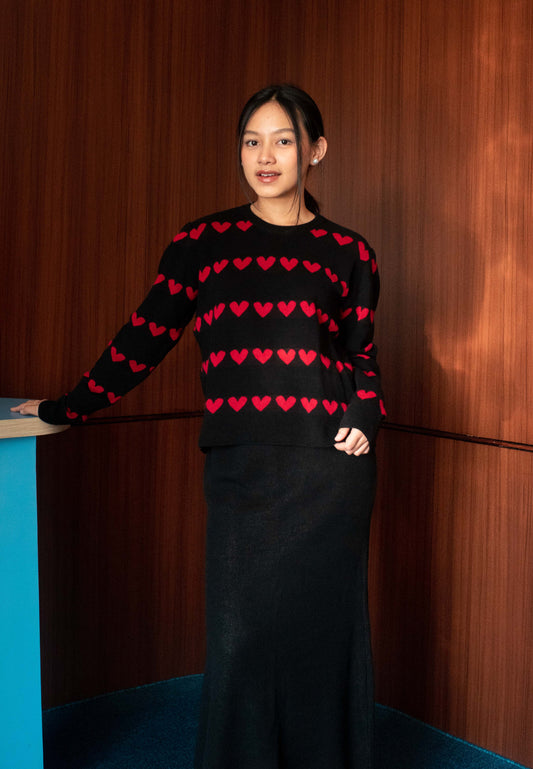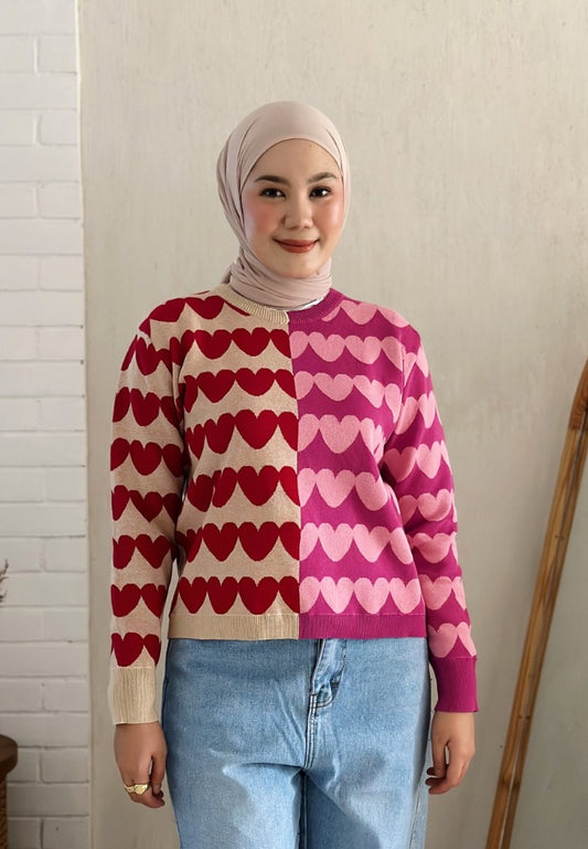 Nonaetal Cupid Heart Knit Sweater Long Sleeve Mix