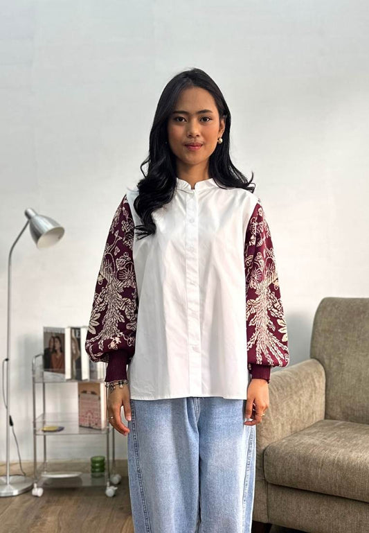 NONAETAL Osaka Heritage Top Knit Sleeve Broken White - Burgundy
