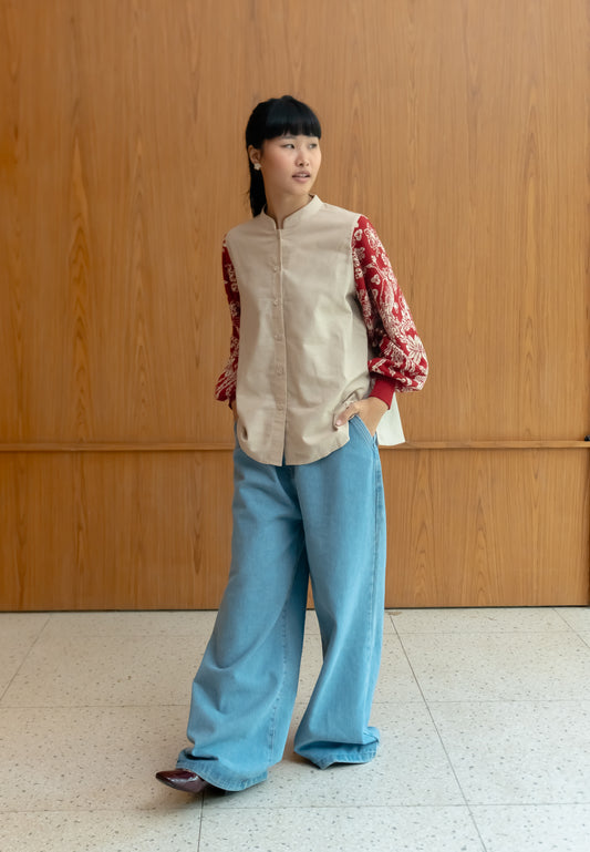 NONAETAL Osaka Heritage Top Knit Sleeve Ecru - Red