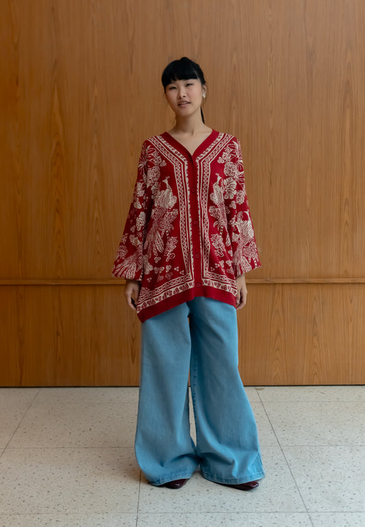 NONAETAL Greta Heritage Knit Cardigan Oversized Red