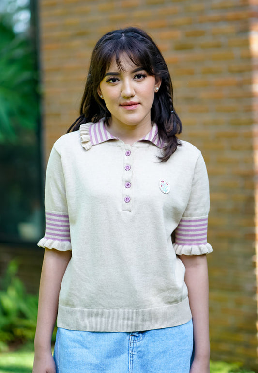 NONAETAL X IFY ALYSSA Seirama Polo Knit Short Sleeve Latte