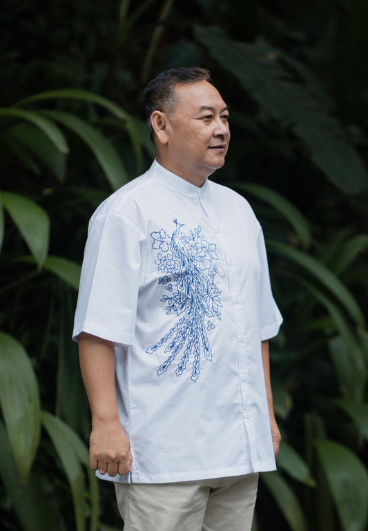 NONAETAL Merak Embroidery Shirt Men Broken White
