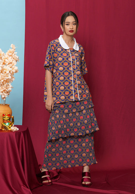 NONA Agatha Printed Tshirt Short Sleeve Cobalt Blue