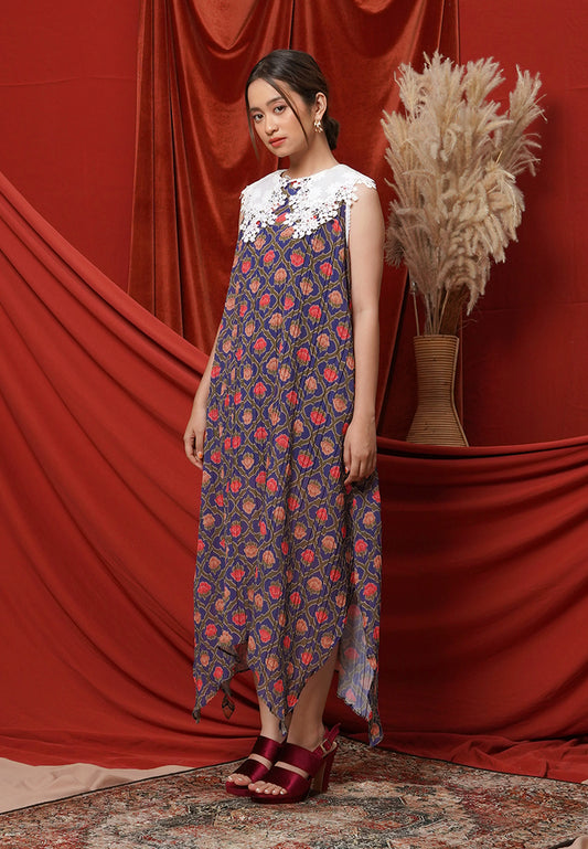 NONA Doris Short Sleeve Pleat Dress Cobalt Blue