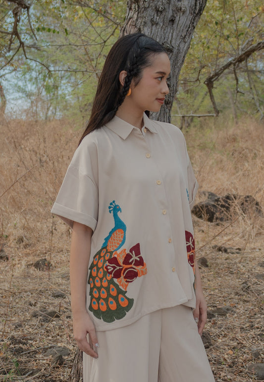 NONAETAL Bougainville Peafowl Top Short Sleeve Winter Cream