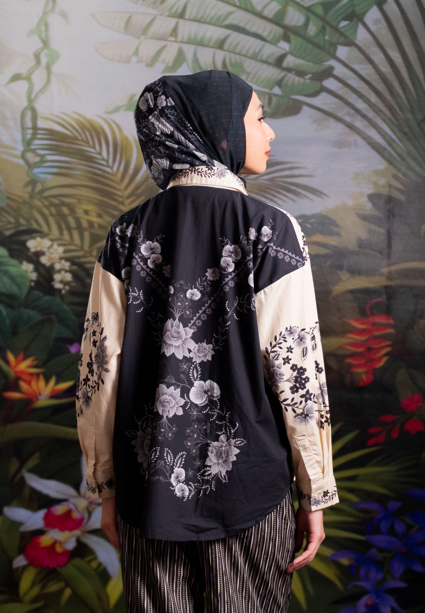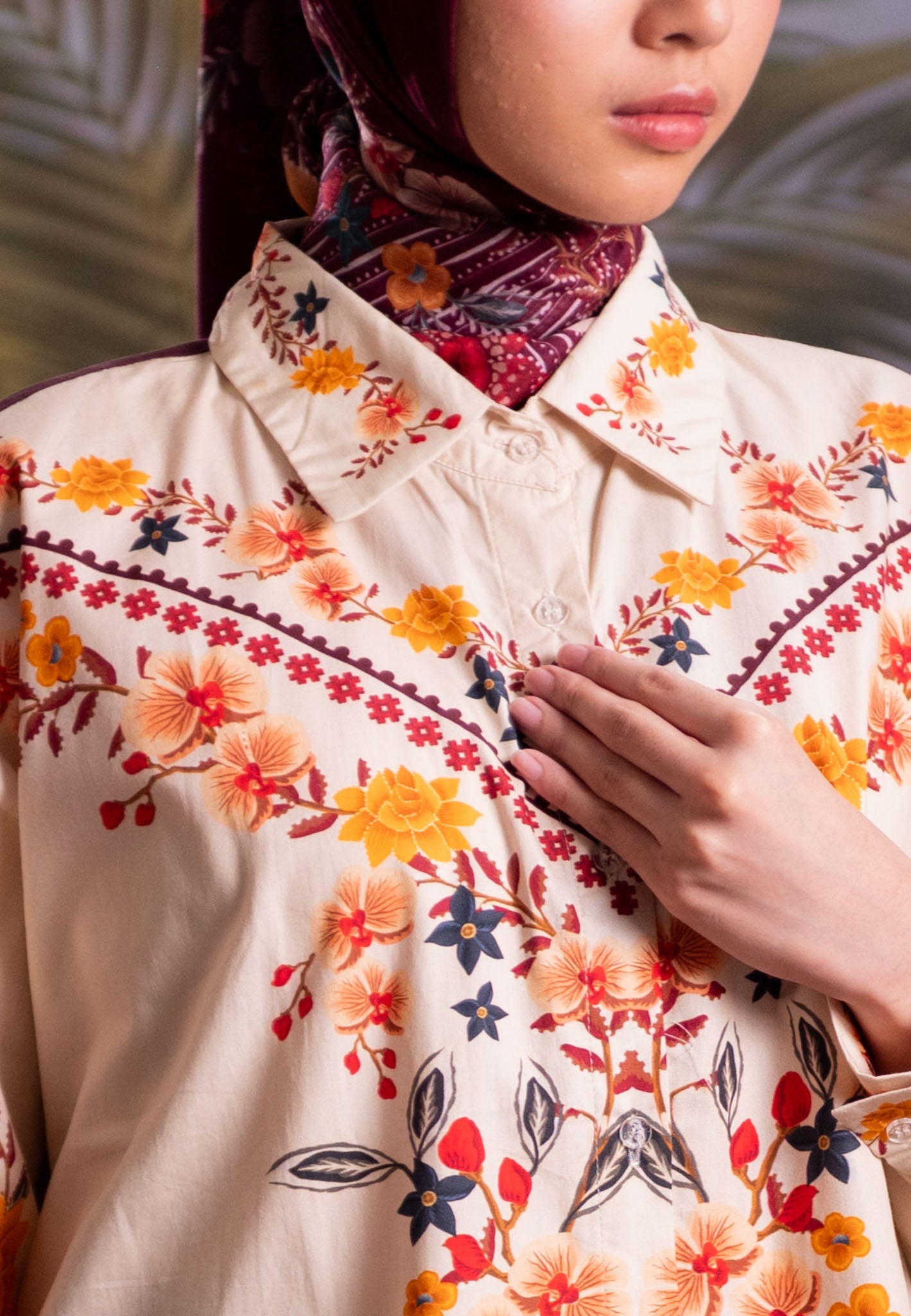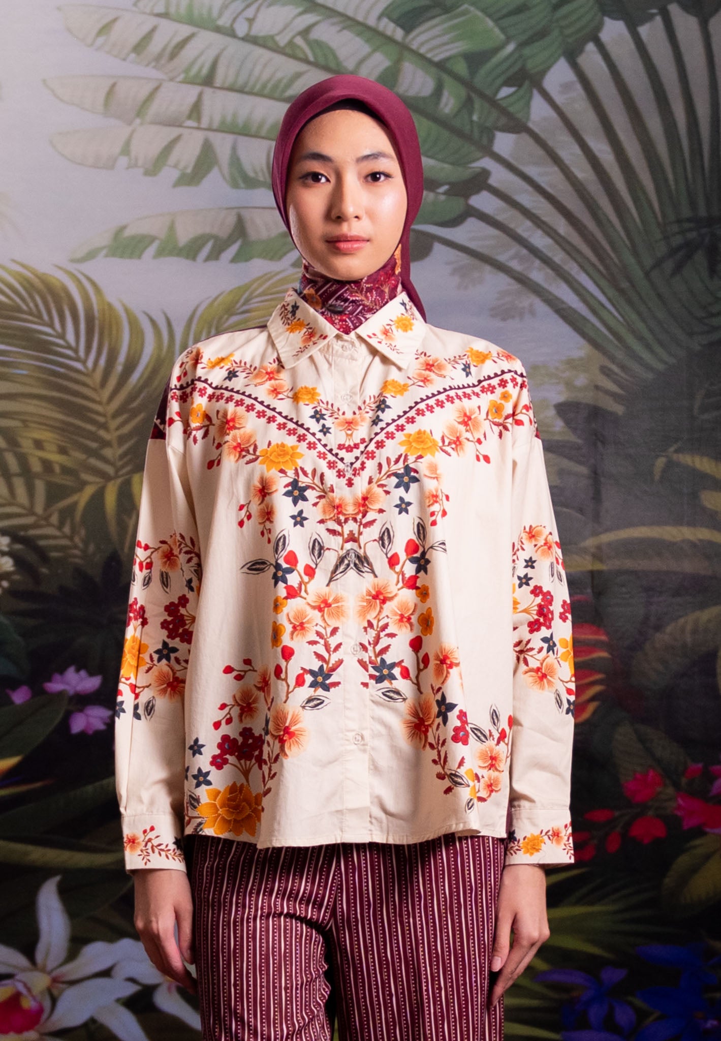 Part of our “Whispers of Nature” collection, this shirt is designed as a versatile piece to complement your wardrobe. It combines artistic botanical prints with a relaxed, elegant silhouette, making it an effortless choice for those who seek elegance beyond the festive season.