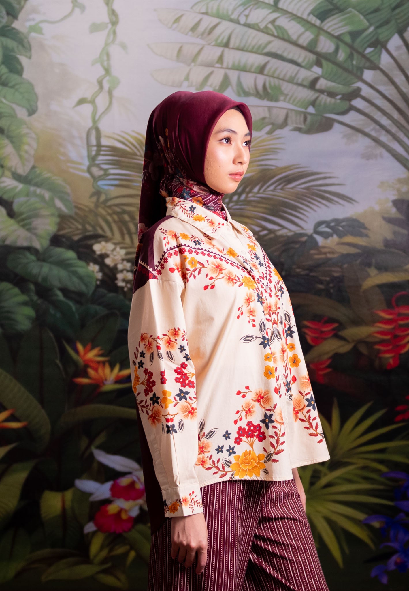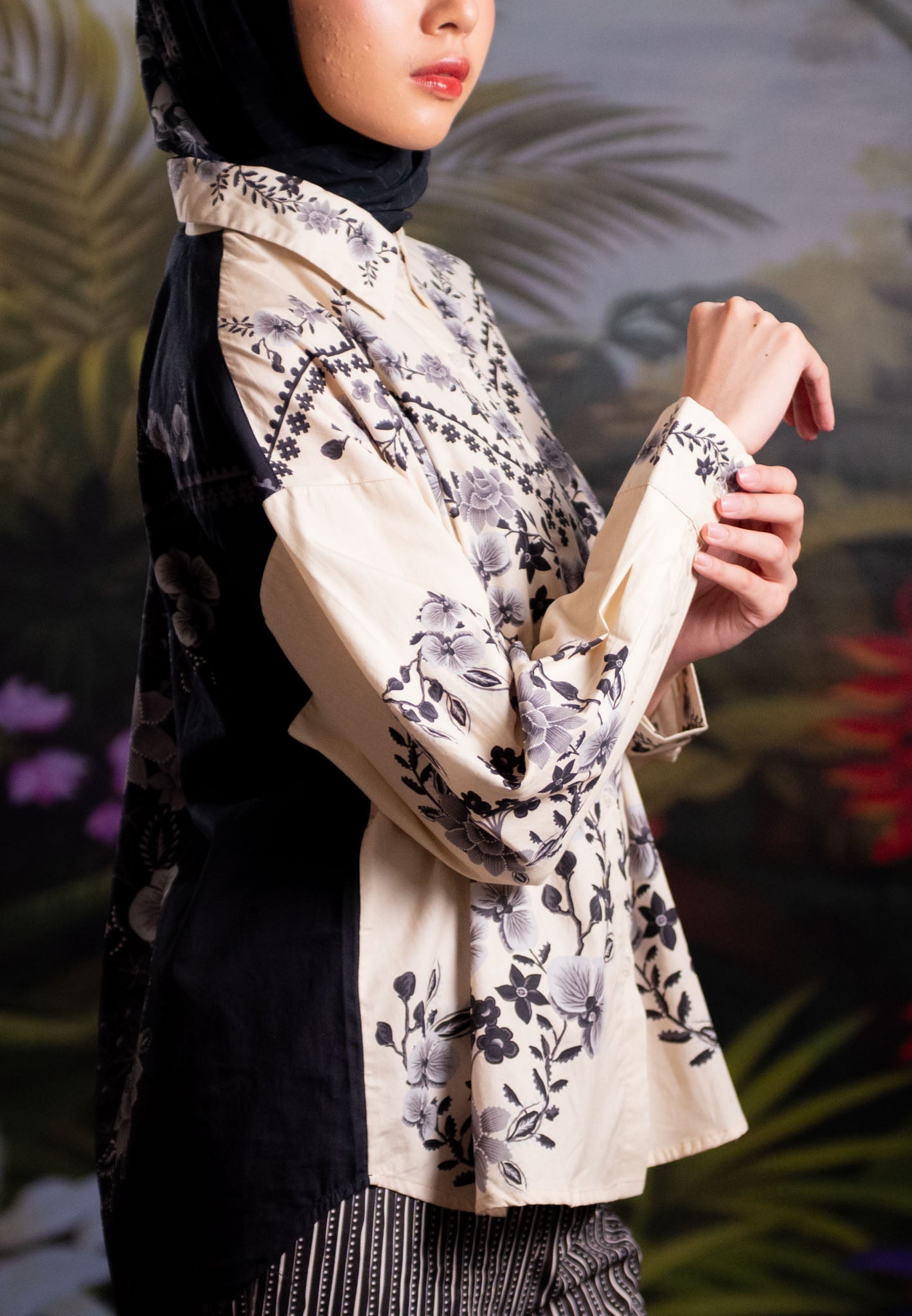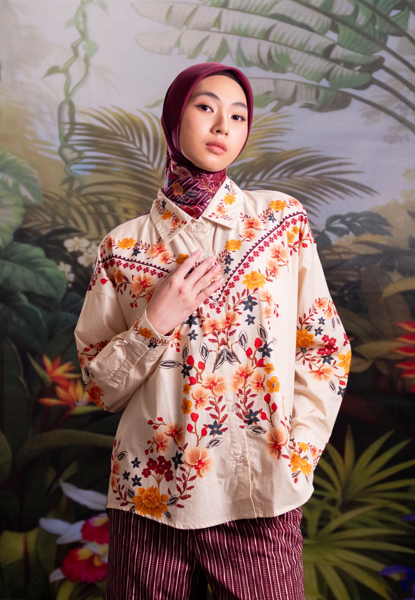 Part of our “Whispers of Nature” collection, this shirt is designed as a versatile piece to complement your wardrobe. It combines artistic botanical prints with a relaxed, elegant silhouette, making it an effortless choice for those who seek elegance beyond the festive season.